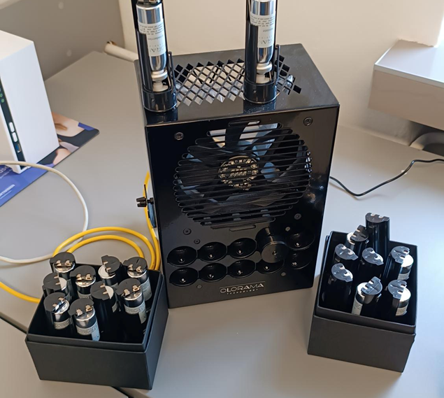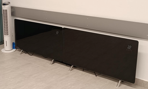 W skład zestawu wchodzą 2 mobilne promienniki podczerwieni 720 W, 1 promiennik naścienny 1000 W oraz mobilny klimatyzator.
